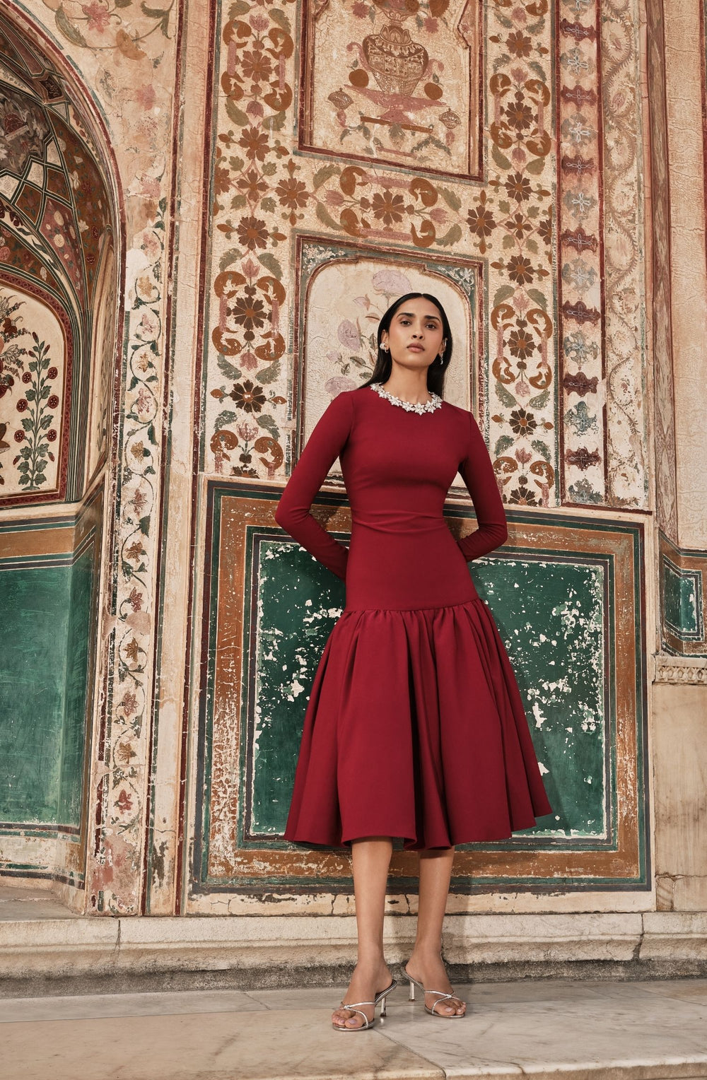 اللون العنابي، المرتبط غالبًا بالوفرة، يرمز للحياة والتجديد ويشعر بأهمية خاصة في الجزء الأخير من رمضان مع انتقال الموسم نحو بدايات جديدة. إنه ظل مثالي لتجربة تنسيق ألوان متناسقة. من طبقة شفافة أسفل الفستان لتوفير التغطية، إلى أحذية باللون العنابي أو مكياج متناسق برفق، فإن تدرجات اللون العنابي تخلق إطلالة متناغمة وراقية.